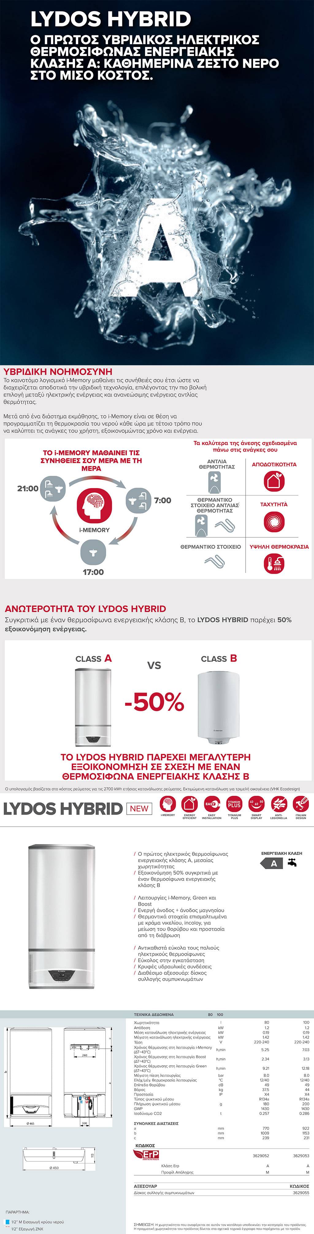 Θερμοσίφωνας Ariston Lydos Hybrid 100lt 1.2kW Κάθετος