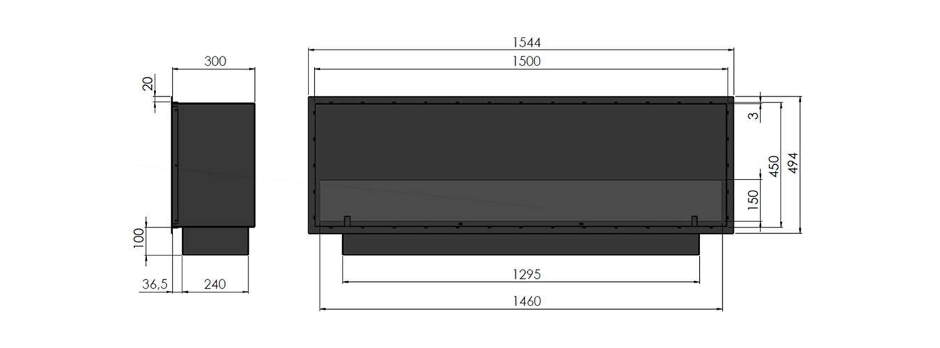 Τζάκι Βιοαιθανόλης INFIRE Slim Inside Black 1500