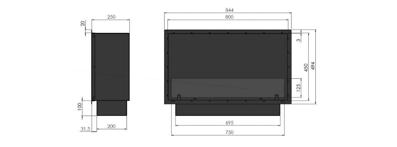 Τζάκι Βιοαιθανόλης INFIRE Slim Inside Black 800