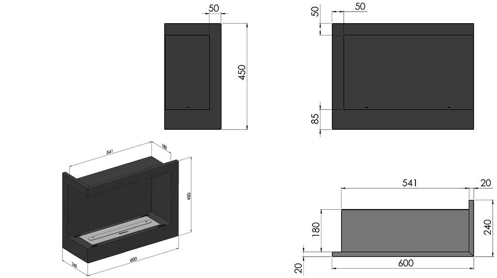 Τζάκι Βιοαιθανόλης SIMPLE FIRE CORNER 600 Right