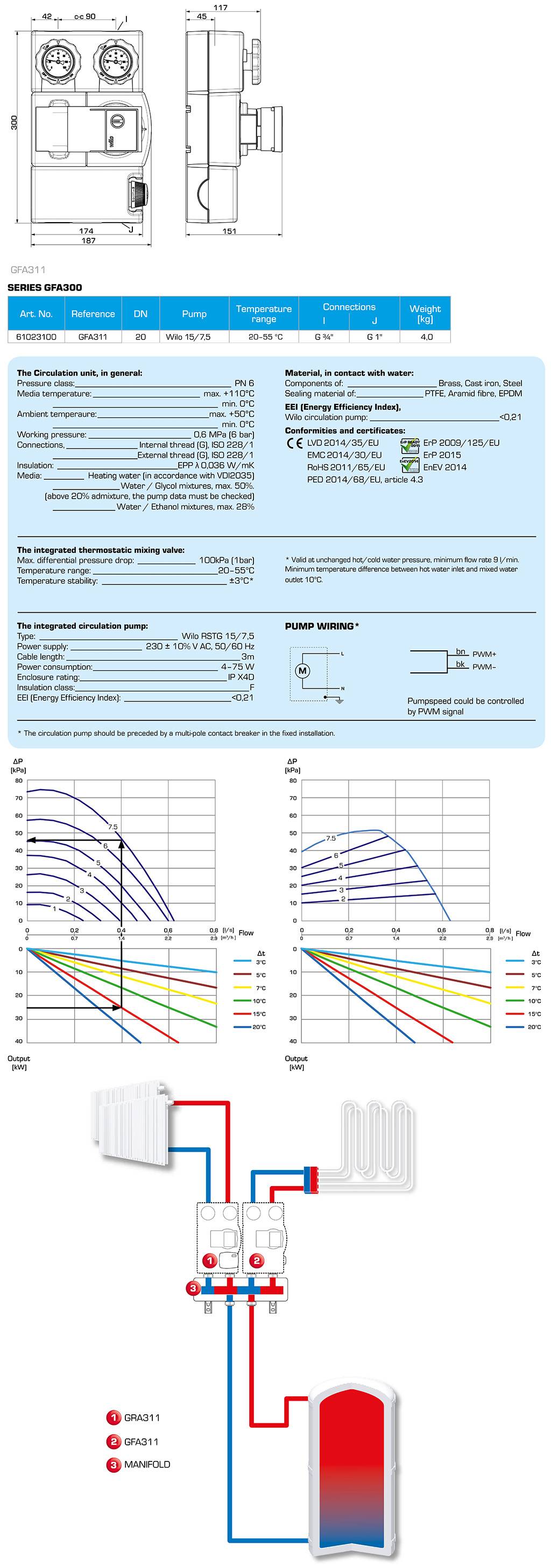 Υδραυλική μονάδα ανάμιξης σταθερής θερμοκρασίας με θερμοστατική βαλβίδα και κυκλοφορητή Wilo 15/7.5